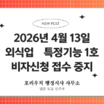 기타 수속2026年3月31日일본 외식업 특정기능 비자, 2026년 4월 13일부터 사실상 제한됩니다