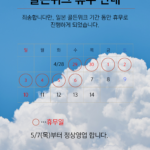 휴무로 인해 불편을 끼쳐드리게 된 점 양해 부탁드립니다.